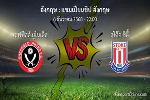 วิเคราะห์บอล แชมเปียนชิป อังกฤษ ระหว่าง เชฟฟีลด์ ยูไนเต็ด พบ สโต๊ค ซิตี้ (6 ธันวาคม 2568)