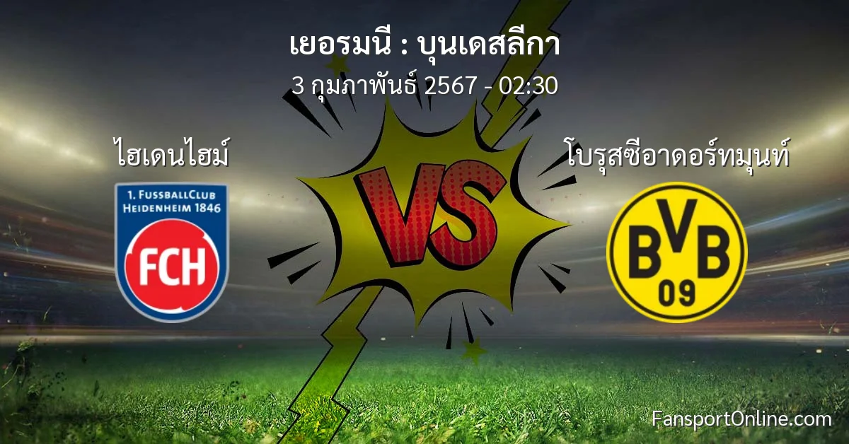 วิเคราะห์บอล บุนเดสลีกา ระหว่าง ไฮเดนไฮม์ พบ โบรุสซีอาดอร์ทมุนท์ (3 กุมภาพันธ์ 2567)