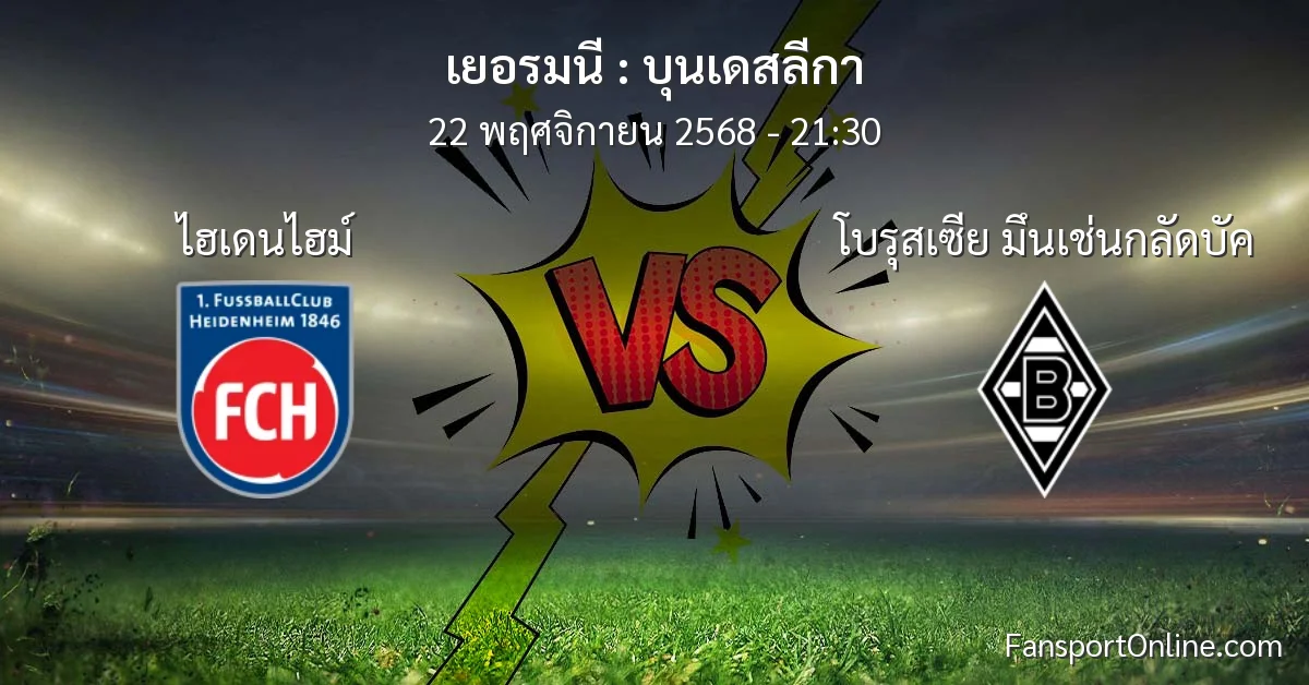 วิเคราะห์บอล บุนเดสลีกา ระหว่าง ไฮเดนไฮม์ พบ โบรุสเซีย มึนเช่นกลัดบัค (22 พฤศจิกายน 2568)