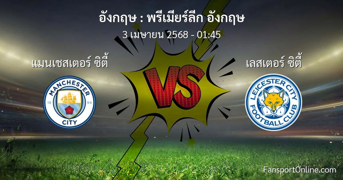 วิเคราะห์บอล พรีเมียร์ลีก อังกฤษ ระหว่าง แมนเชสเตอร์ ซิตี้ พบ เลสเตอร์ ซิตี้ (3 เมษายน 2568)