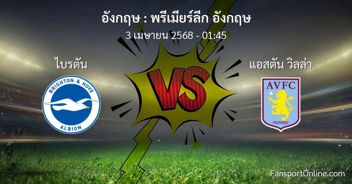 วิเคราะห์บอล พรีเมียร์ลีก อังกฤษ ระหว่าง ไบรตัน พบ แอสตัน วิลล่า (3 เมษายน 2568)