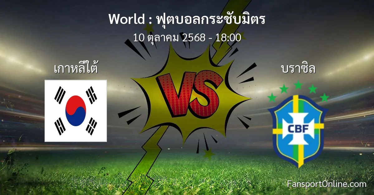 วิเคราะห์บอล ฟุตบอลกระชับมิตร ระหว่าง เกาหลีใต้ พบ บราซิล (10 ตุลาคม 2568)
