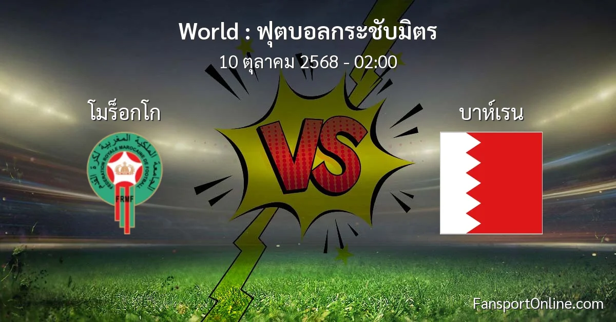 วิเคราะห์บอล ฟุตบอลกระชับมิตร ระหว่าง โมร็อกโก พบ บาห์เรน (10 ตุลาคม 2568)