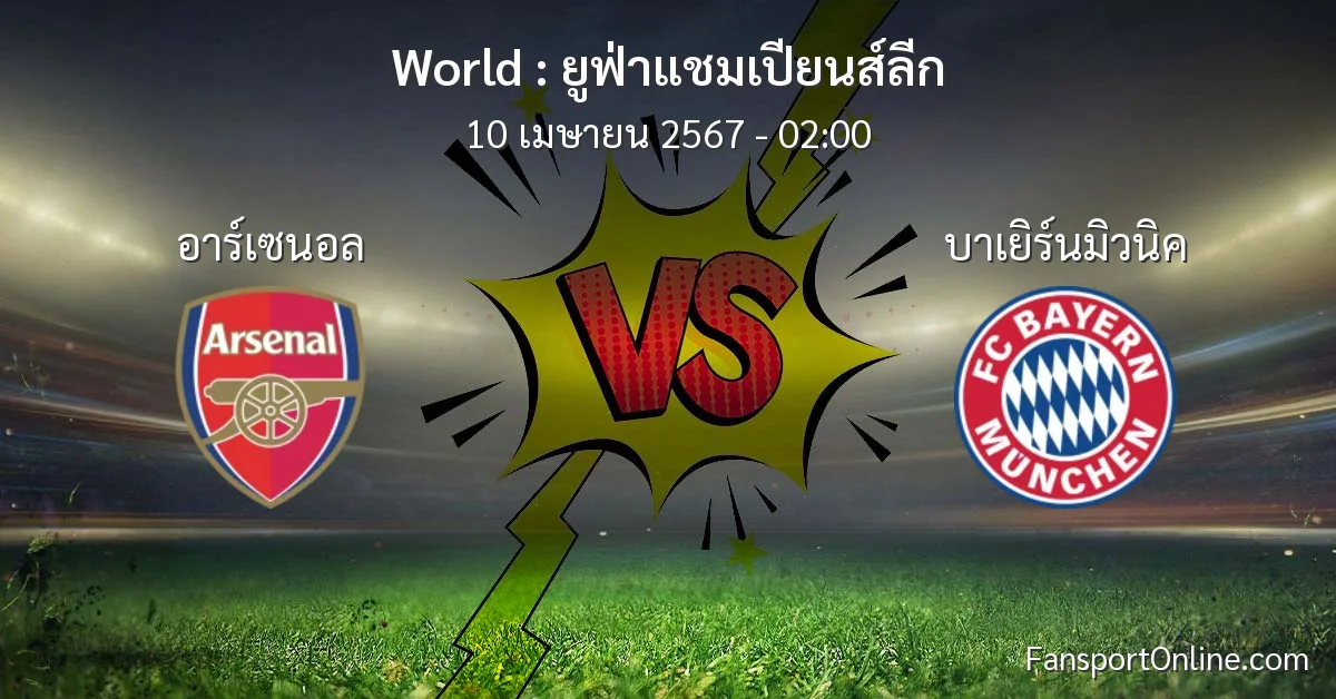 วิเคราะห์บอล ยูฟ่าแชมเปียนส์ลีก ระหว่าง อาร์เซนอล พบ บาเยิร์นมิวนิค (10 เมษายน 2567)