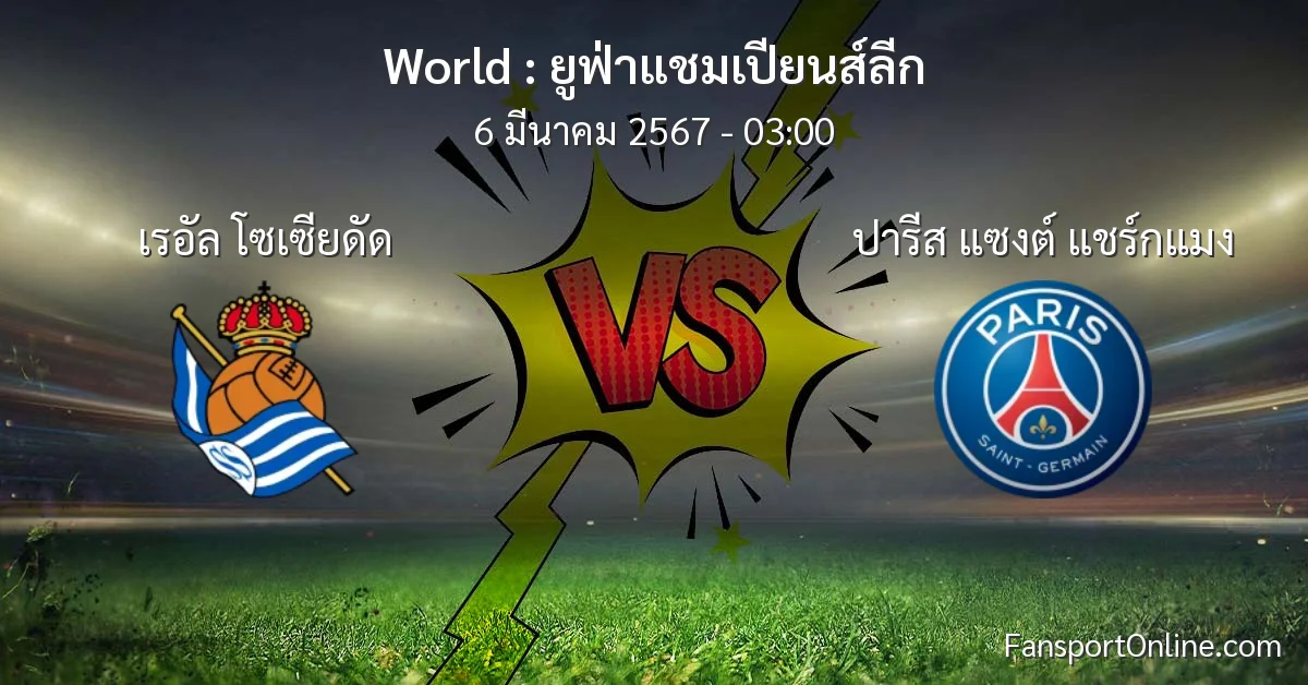 วิเคราะห์บอล ยูฟ่าแชมเปียนส์ลีก ระหว่าง เรอัล โซเซียดัด พบ ปารีส แซงต์ แชร์กแมง (6 มีนาคม 2567)