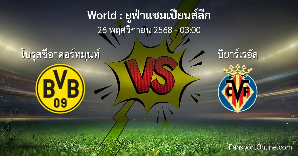 วิเคราะห์บอล ยูฟ่าแชมเปียนส์ลีก ระหว่าง โบรุสซีอาดอร์ทมุนท์ พบ บิยาร์เรอัล (26 พฤศจิกายน 2568)