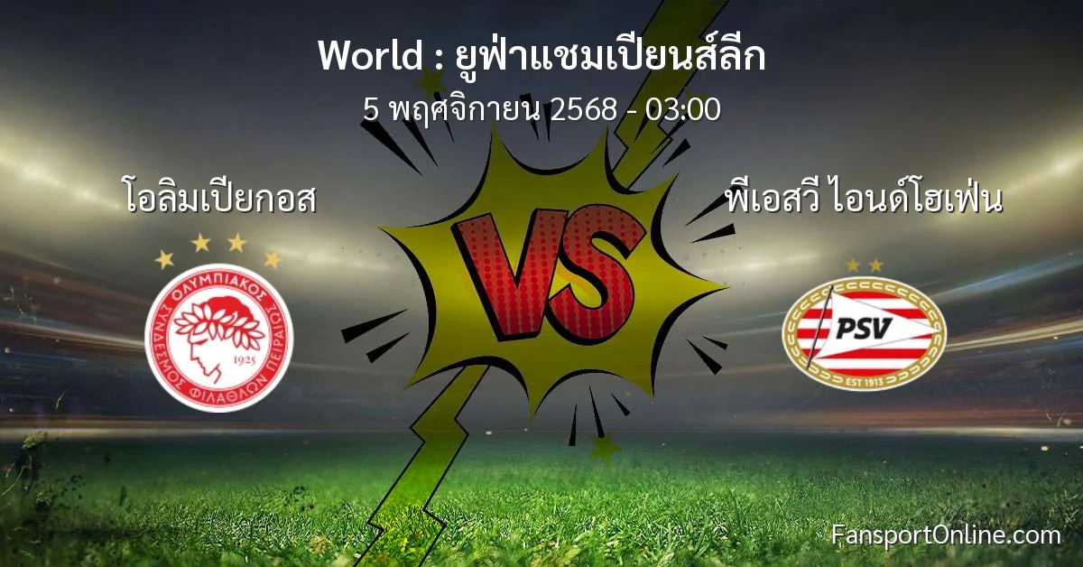 วิเคราะห์บอล ยูฟ่าแชมเปียนส์ลีก ระหว่าง โอลิมเปียกอส พบ พีเอสวี ไอนด์โฮเฟ่น (5 พฤศจิกายน 2568)