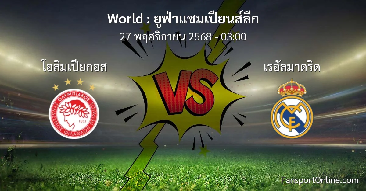 วิเคราะห์บอล ยูฟ่าแชมเปียนส์ลีก ระหว่าง โอลิมเปียกอส พบ เรอัลมาดริด (27 พฤศจิกายน 2568)