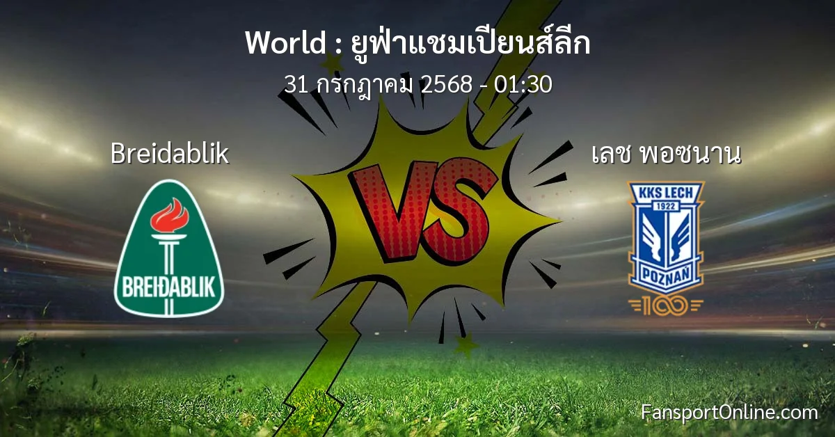 วิเคราะห์บอล ยูฟ่าแชมเปียนส์ลีก ระหว่าง Breidablik พบ เลช พอซนาน (31 กรกฎาคม 2568)