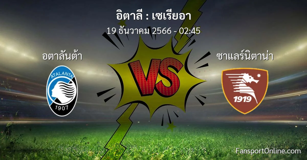 วิเคราะห์บอล เซเรียอา ระหว่าง อตาลันต้า พบ ซาแลร์นิตาน่า (19 ธันวาคม 2566)