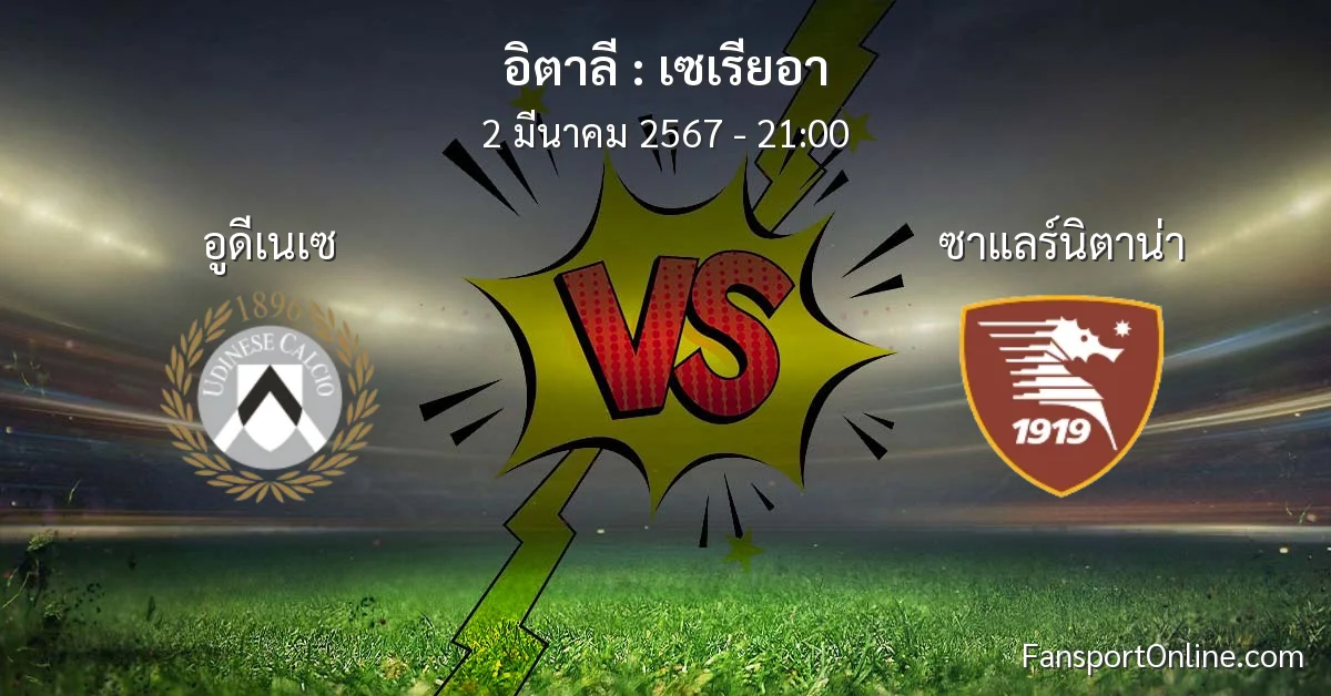 วิเคราะห์บอล เซเรียอา ระหว่าง อูดีเนเซ พบ ซาแลร์นิตาน่า (2 มีนาคม 2567)
