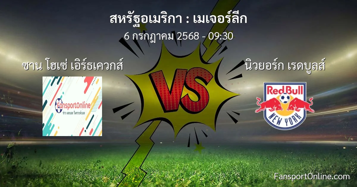 วิเคราะห์บอล เมเจอร์ลีก ระหว่าง ซาน โฮเซ่ เอิร์ธเควกส์ พบ นิวยอร์ก เรดบูลส์ (6 กรกฎาคม 2568)