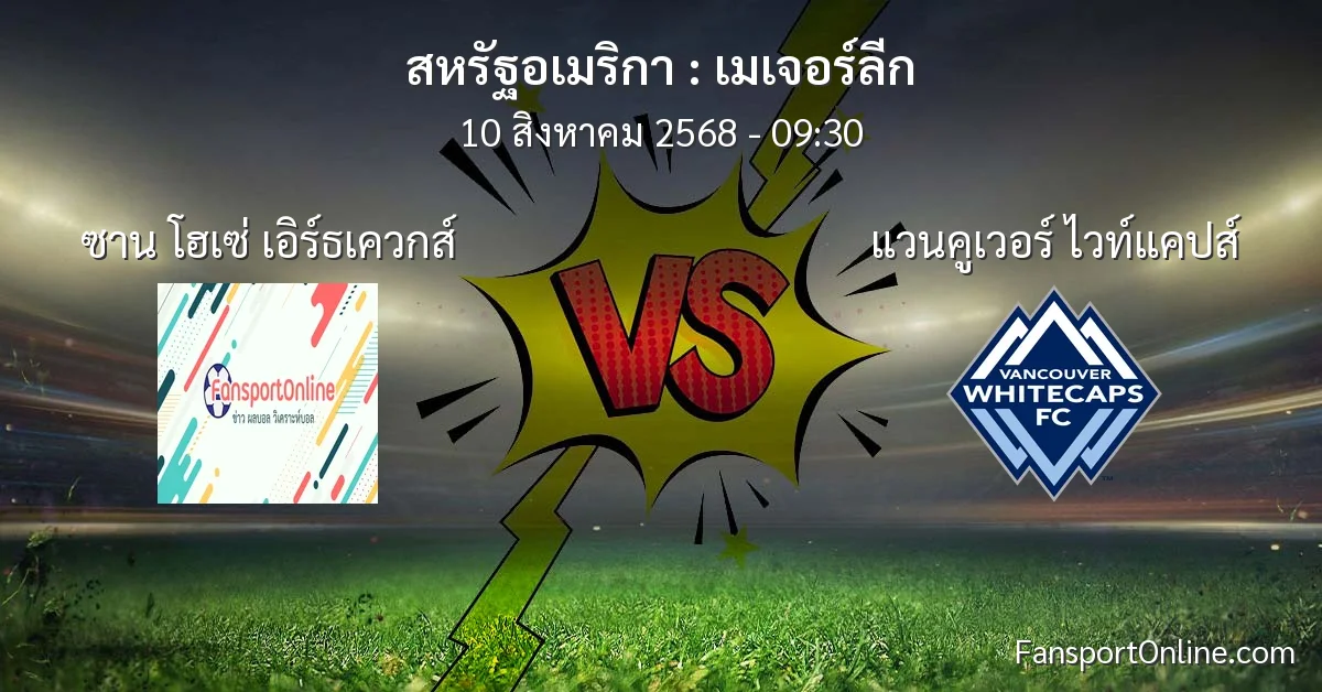 วิเคราะห์บอล เมเจอร์ลีก ระหว่าง ซาน โฮเซ่ เอิร์ธเควกส์ พบ แวนคูเวอร์ ไวท์แคปส์ (10 สิงหาคม 2568)