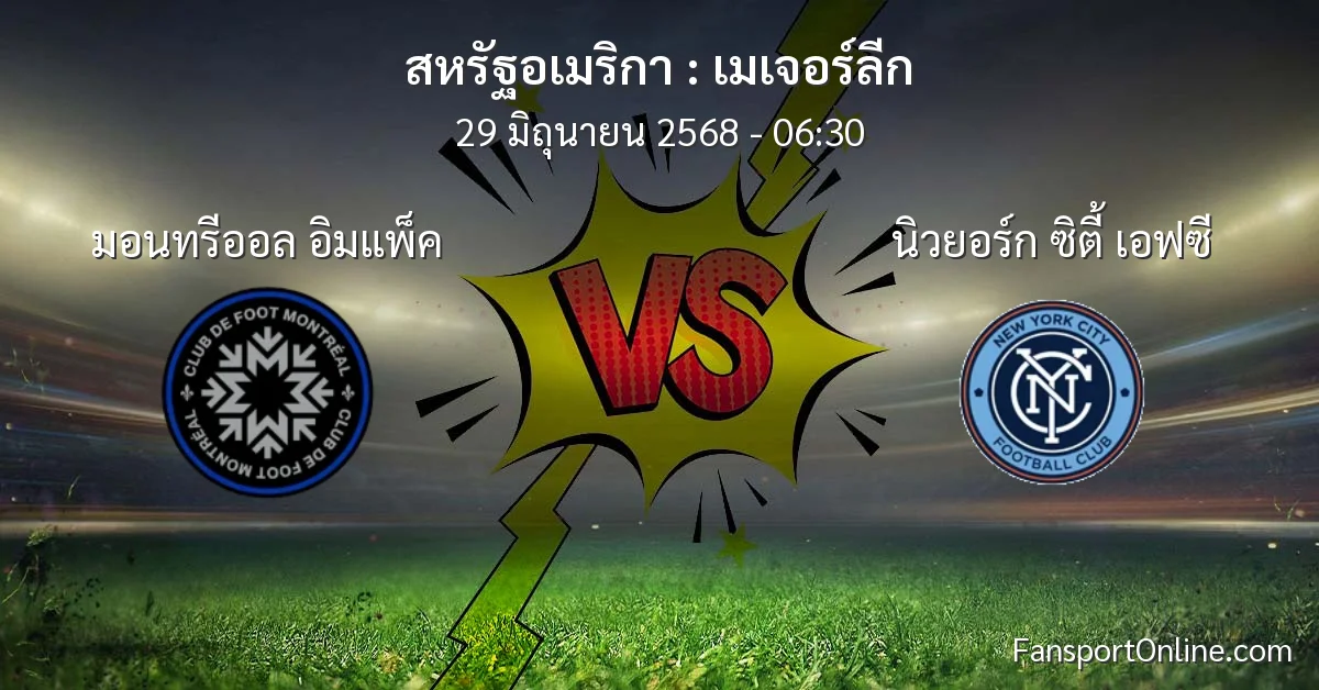 วิเคราะห์บอล เมเจอร์ลีก ระหว่าง มอนทรีออล อิมแพ็ค พบ นิวยอร์ก ซิตี้ เอฟซี (29 มิถุนายน 2568)