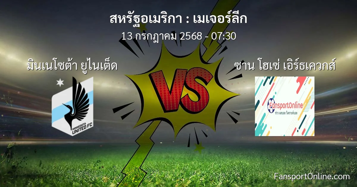 วิเคราะห์บอล เมเจอร์ลีก ระหว่าง มินเนโซต้า ยูไนเต็ด พบ ซาน โฮเซ่ เอิร์ธเควกส์ (13 กรกฎาคม 2568)