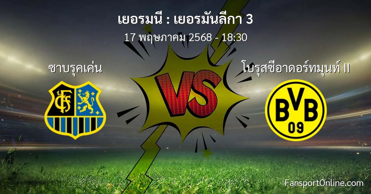 วิเคราะห์บอล เยอรมันลีกา 3 ระหว่าง ซาบรุคเค่น พบ โบรุสซีอาดอร์ทมุนท์ II (17 พฤษภาคม 2568)
