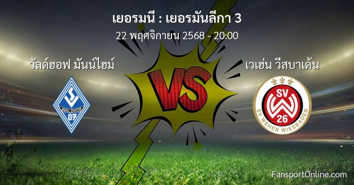 วิเคราะห์บอล เยอรมันลีกา 3 ระหว่าง วัลด์ฮอฟ มันน์ไฮม์ พบ เวเฮ่น วีสบาเด้น (22 พฤศจิกายน 2568)