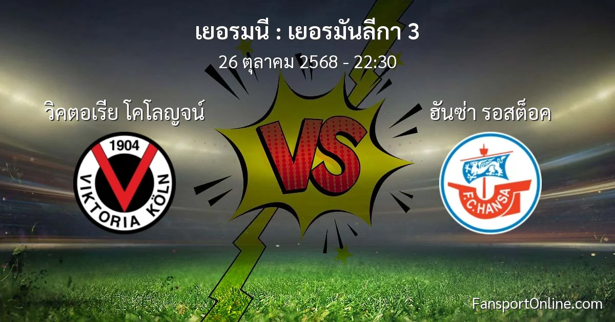 วิเคราะห์บอล เยอรมันลีกา 3 ระหว่าง วิคตอเรีย โคโลญจน์ พบ ฮันซ่า รอสต็อค (26 ตุลาคม 2568)