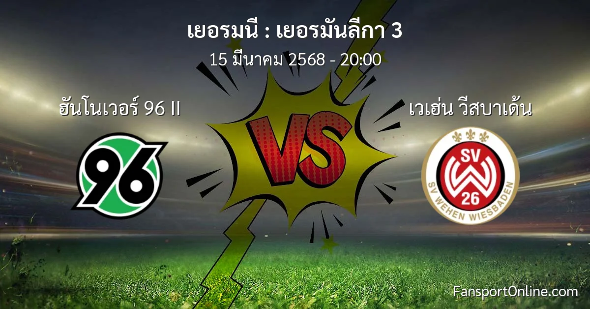 วิเคราะห์บอล เยอรมันลีกา 3 ระหว่าง ฮันโนเวอร์ 96 II พบ เวเฮ่น วีสบาเด้น (15 มีนาคม 2568)