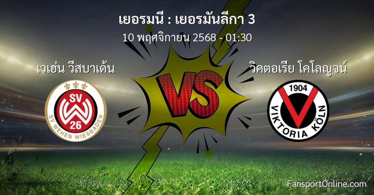 วิเคราะห์บอล เยอรมันลีกา 3 ระหว่าง เวเฮ่น วีสบาเด้น พบ วิคตอเรีย โคโลญจน์ (10 พฤศจิกายน 2568)