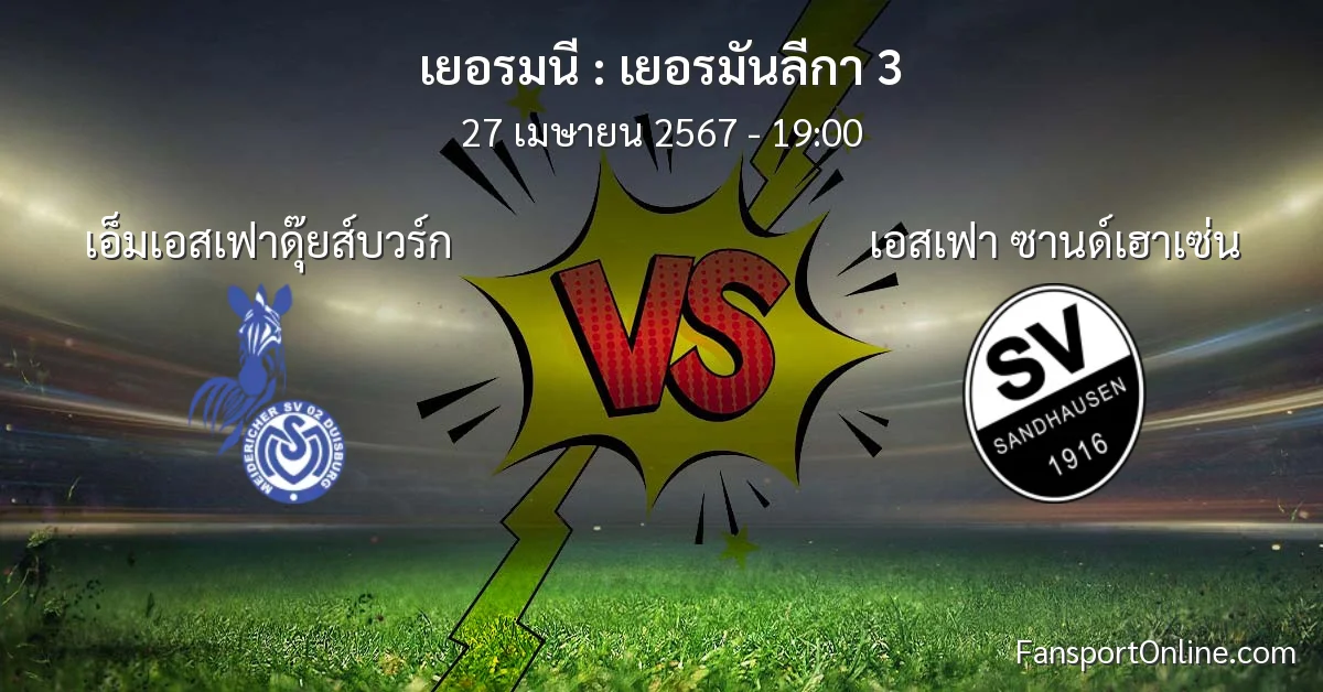 วิเคราะห์บอล เยอรมันลีกา 3 ระหว่าง เอ็มเอสเฟาดุ๊ยส์บวร์ก พบ เอสเฟา ซานด์เฮาเซ่น (27 เมษายน 2567)