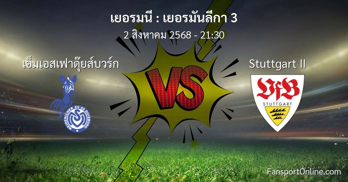 วิเคราะห์บอล เยอรมันลีกา 3 ระหว่าง เอ็มเอสเฟาดุ๊ยส์บวร์ก พบ Stuttgart II (2 สิงหาคม 2568)