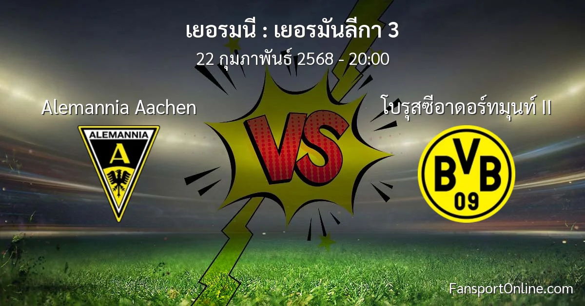 วิเคราะห์บอล เยอรมันลีกา 3 ระหว่าง Alemannia Aachen พบ โบรุสซีอาดอร์ทมุนท์ II (22 กุมภาพันธ์ 2568)