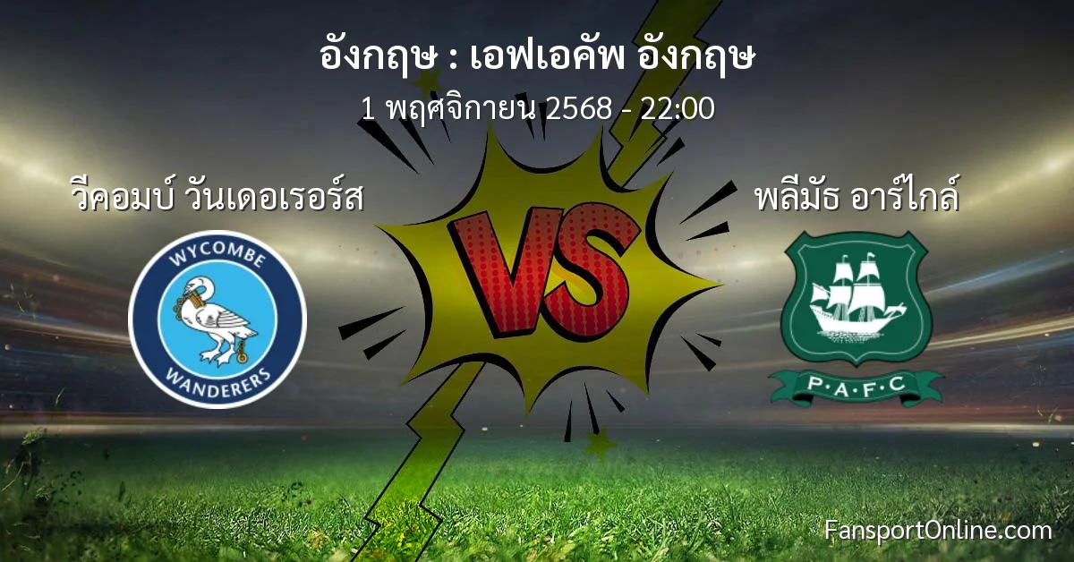 วิเคราะห์บอล เอฟเอคัพ อังกฤษ ระหว่าง วีคอมบ์ วันเดอเรอร์ส พบ พลีมัธ อาร์ไกล์ (1 พฤศจิกายน 2568)