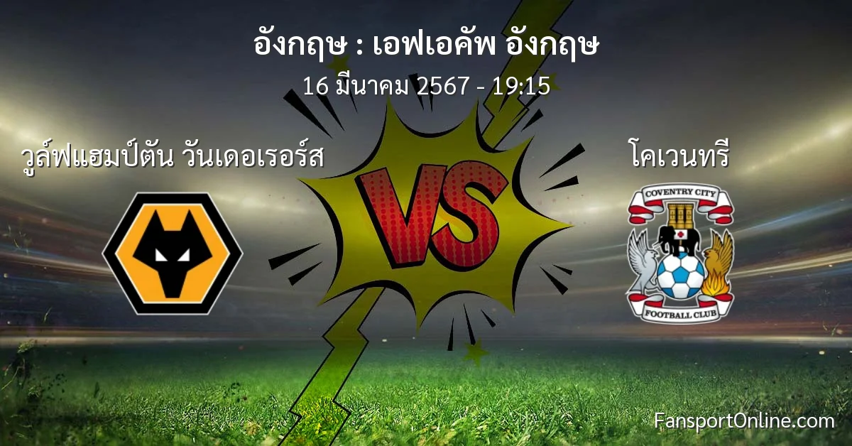วิเคราะห์บอล เอฟเอคัพ อังกฤษ ระหว่าง วูล์ฟแฮมป์ตัน วันเดอเรอร์ส พบ โคเวนทรี (16 มีนาคม 2567)