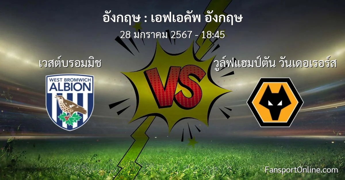 วิเคราะห์บอล เอฟเอคัพ อังกฤษ ระหว่าง เวสต์บรอมมิช พบ วูล์ฟแฮมป์ตัน วันเดอเรอร์ส (28 มกราคม 2567)