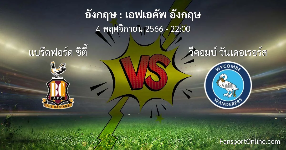 วิเคราะห์บอล เอฟเอคัพ อังกฤษ ระหว่าง แบร๊ดฟอร์ด ซิตี้ พบ วีคอมบ์ วันเดอเรอร์ส (4 พฤศจิกายน 2566)