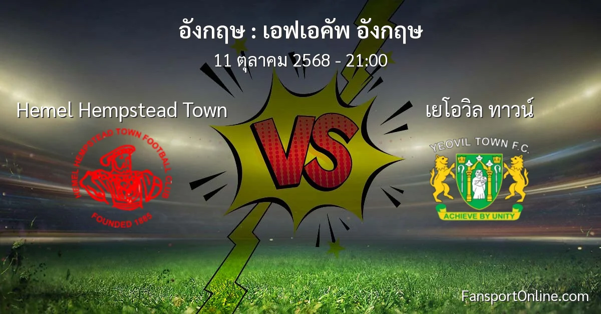 วิเคราะห์บอล เอฟเอคัพ อังกฤษ ระหว่าง Hemel Hempstead Town พบ เยโอวิล ทาวน์ (11 ตุลาคม 2568)