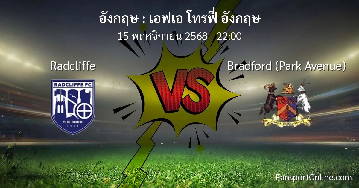 วิเคราะห์บอล เอฟเอ โทรฟี่ อังกฤษ ระหว่าง Radcliffe พบ Bradford (Park Avenue) (15 พฤศจิกายน 2568)