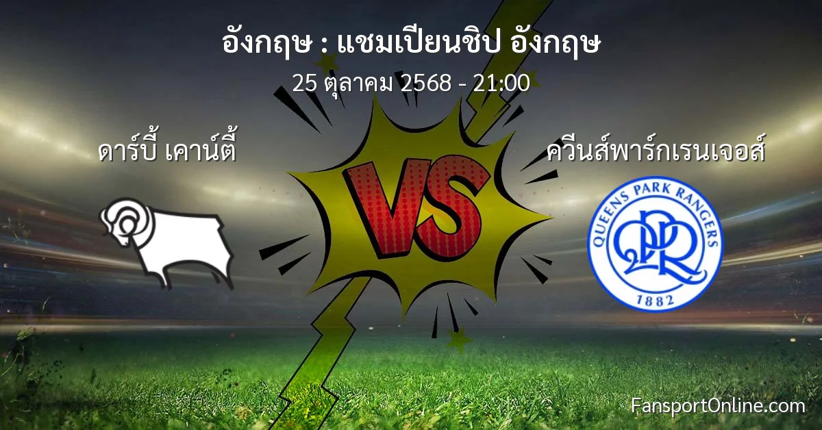 วิเคราะห์บอล แชมเปียนชิป อังกฤษ ระหว่าง ดาร์บี้ เคาน์ตี้ พบ ควีนส์พาร์กเรนเจอส์ (25 ตุลาคม 2568)