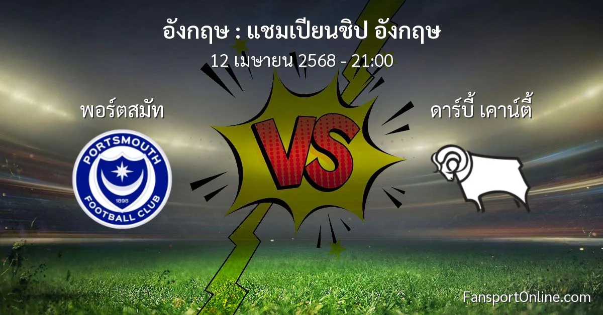 วิเคราะห์บอล แชมเปียนชิป อังกฤษ ระหว่าง พอร์ตสมัท พบ ดาร์บี้ เคาน์ตี้ (12 เมษายน 2568)
