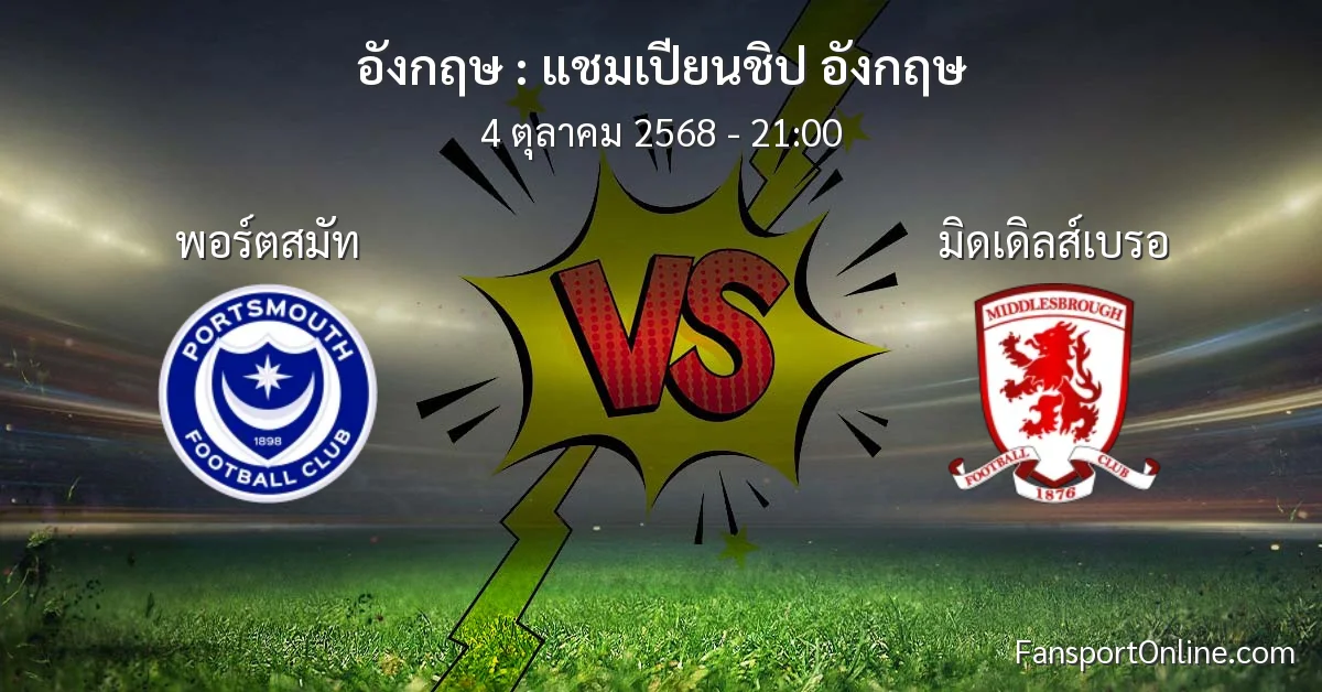 วิเคราะห์บอล แชมเปียนชิป อังกฤษ ระหว่าง พอร์ตสมัท พบ มิดเดิลส์เบรอ (4 ตุลาคม 2568)