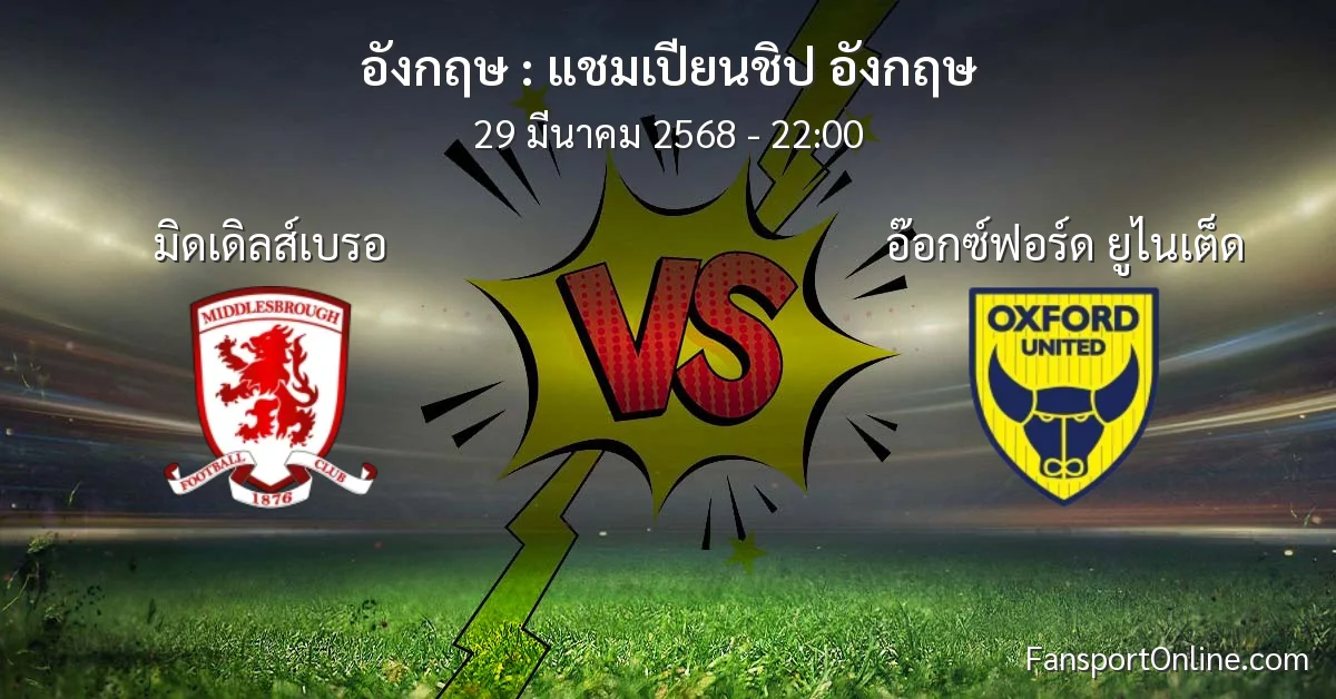 วิเคราะห์บอล แชมเปียนชิป อังกฤษ ระหว่าง มิดเดิลส์เบรอ พบ อ๊อกซ์ฟอร์ด ยูไนเต็ด (29 มีนาคม 2568)