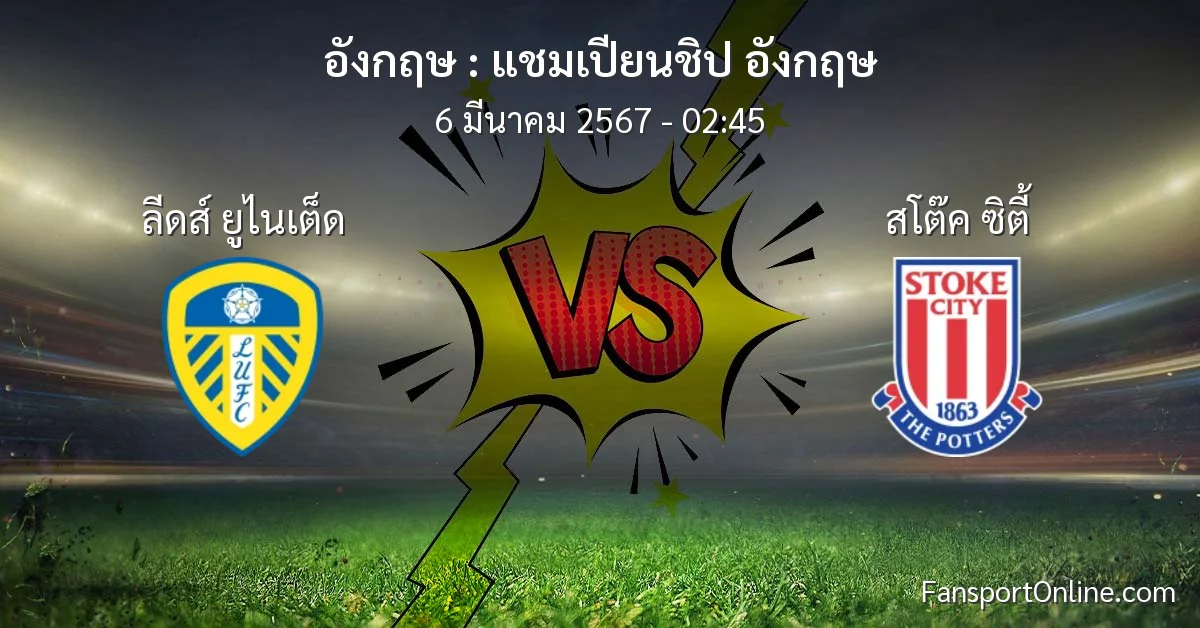 วิเคราะห์บอล แชมเปียนชิป อังกฤษ ระหว่าง ลีดส์ ยูไนเต็ด พบ สโต๊ค ซิตี้ (6 มีนาคม 2567)