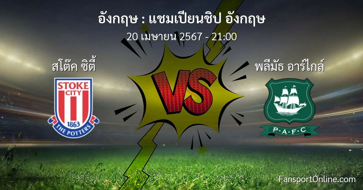 วิเคราะห์บอล แชมเปียนชิป อังกฤษ ระหว่าง สโต๊ค ซิตี้ พบ พลีมัธ อาร์ไกล์ (20 เมษายน 2567)