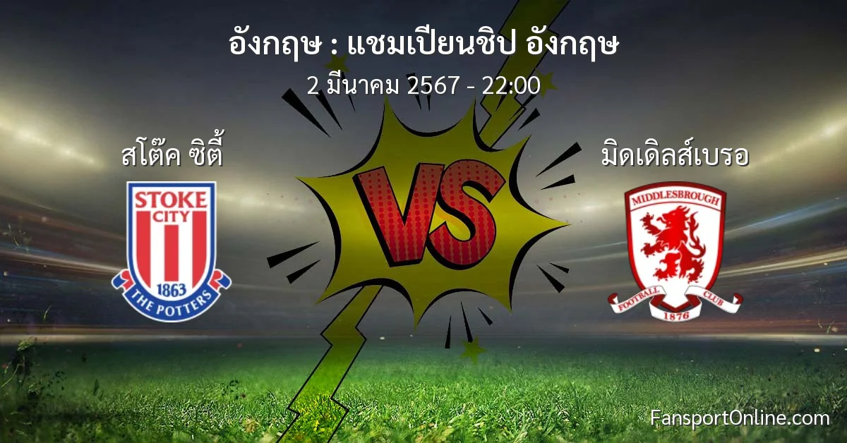 วิเคราะห์บอล แชมเปียนชิป อังกฤษ ระหว่าง สโต๊ค ซิตี้ พบ มิดเดิลส์เบรอ (2 มีนาคม 2567)