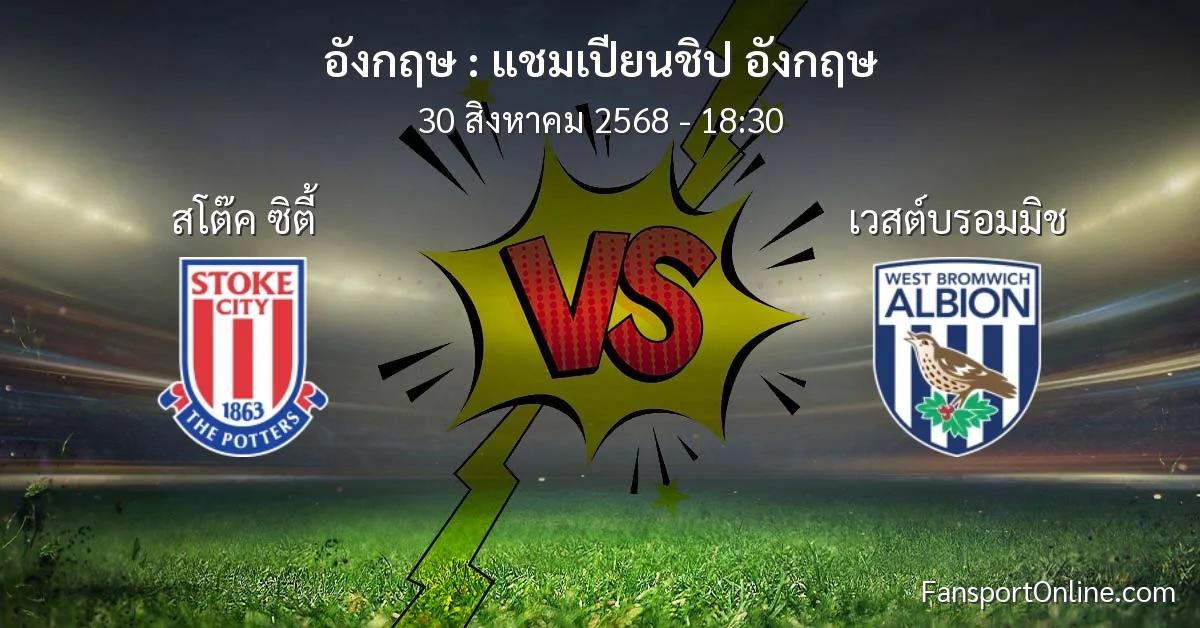 วิเคราะห์บอล แชมเปียนชิป อังกฤษ ระหว่าง สโต๊ค ซิตี้ พบ เวสต์บรอมมิช (30 สิงหาคม 2568)