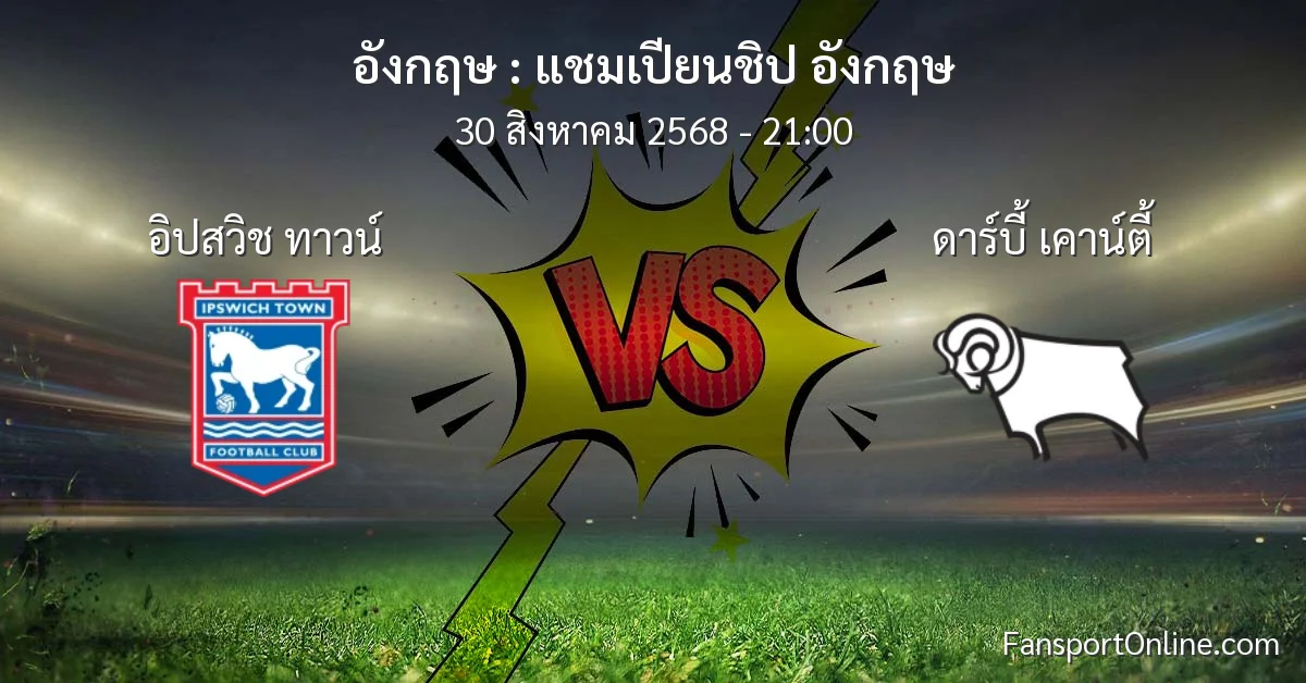 วิเคราะห์บอล แชมเปียนชิป อังกฤษ ระหว่าง อิปสวิช ทาวน์ พบ ดาร์บี้ เคาน์ตี้ (30 สิงหาคม 2568)