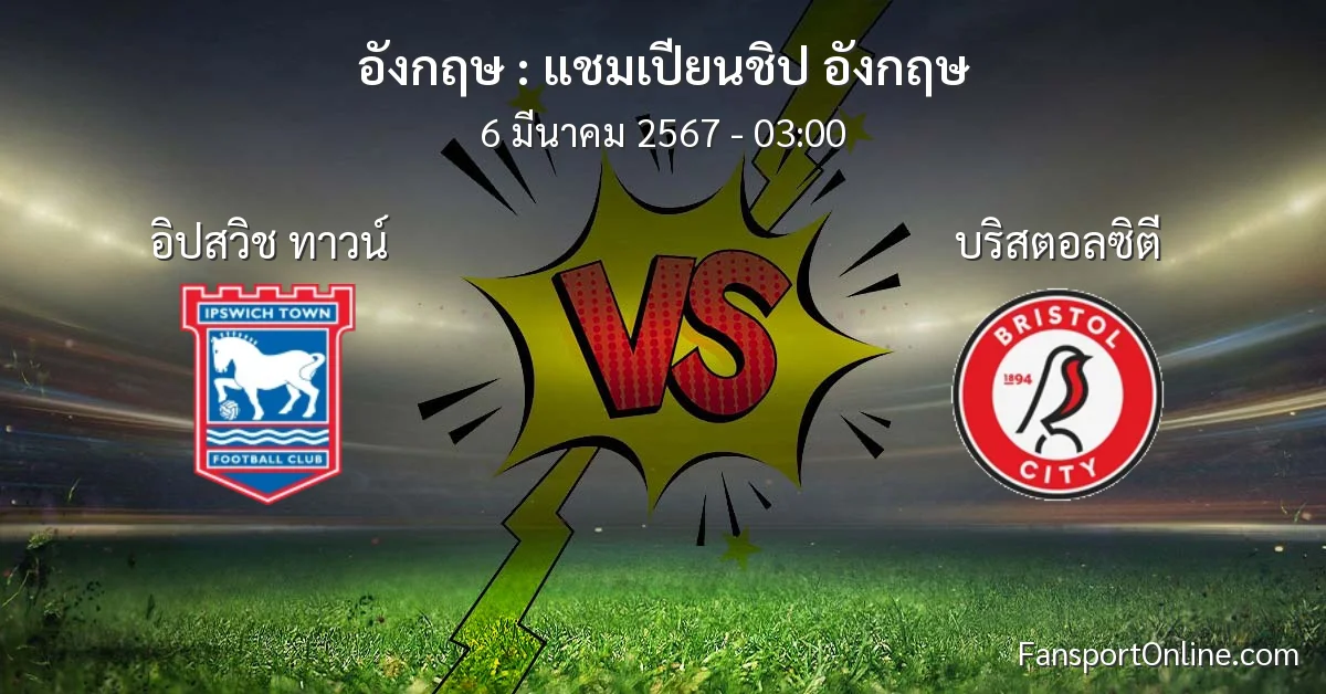 วิเคราะห์บอล แชมเปียนชิป อังกฤษ ระหว่าง อิปสวิช ทาวน์ พบ บริสตอลซิตี (6 มีนาคม 2567)