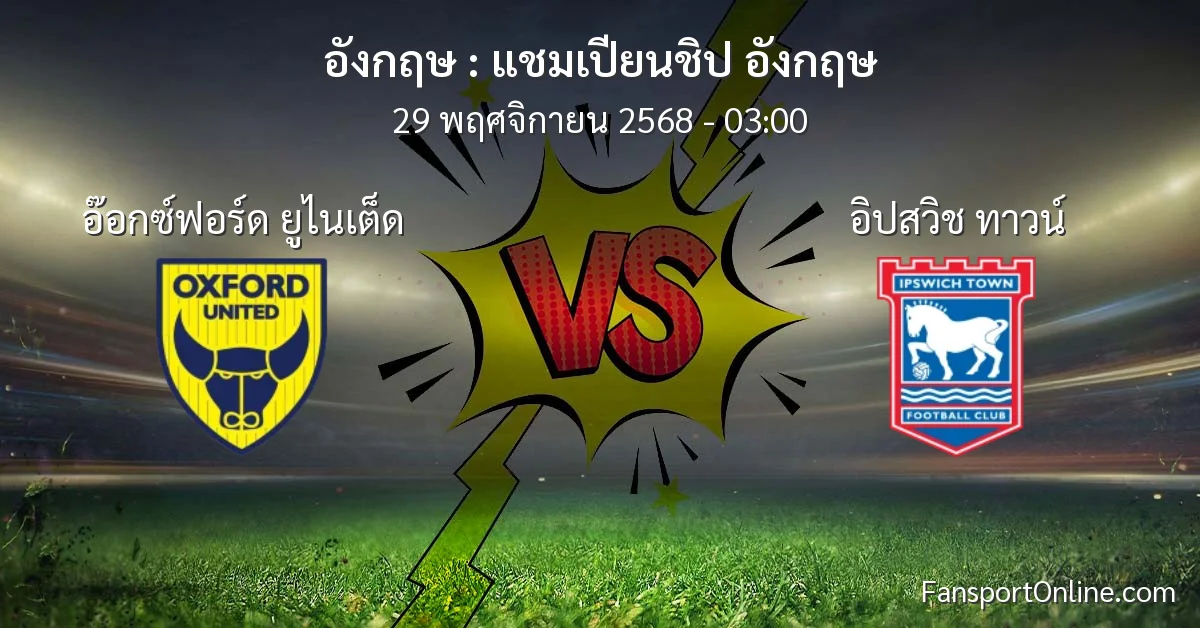 วิเคราะห์บอล แชมเปียนชิป อังกฤษ ระหว่าง อ๊อกซ์ฟอร์ด ยูไนเต็ด พบ อิปสวิช ทาวน์ (29 พฤศจิกายน 2568)