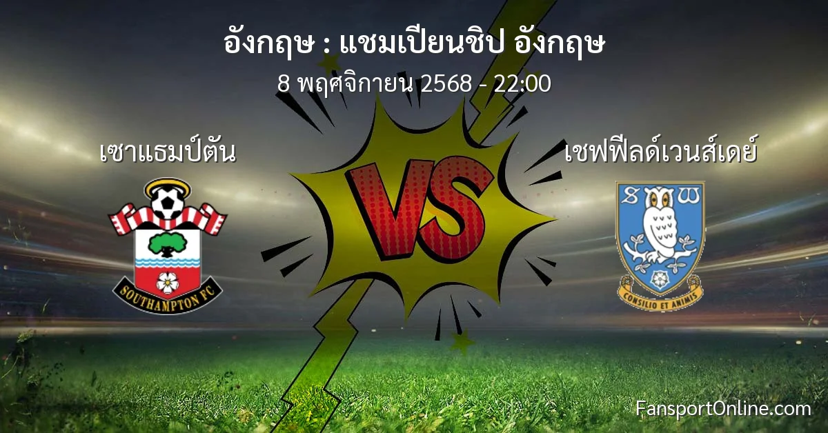 วิเคราะห์บอล แชมเปียนชิป อังกฤษ ระหว่าง เซาแธมป์ตัน พบ เชฟฟีลด์เวนส์เดย์ (8 พฤศจิกายน 2568)