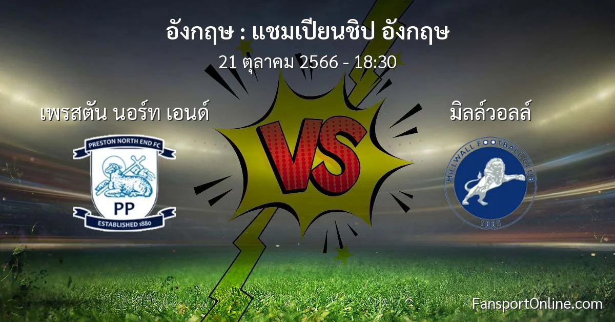 วิเคราะห์บอล แชมเปียนชิป อังกฤษ ระหว่าง เพรสตัน นอร์ท เอนด์ พบ มิลล์วอลล์ (21 ตุลาคม 2566)