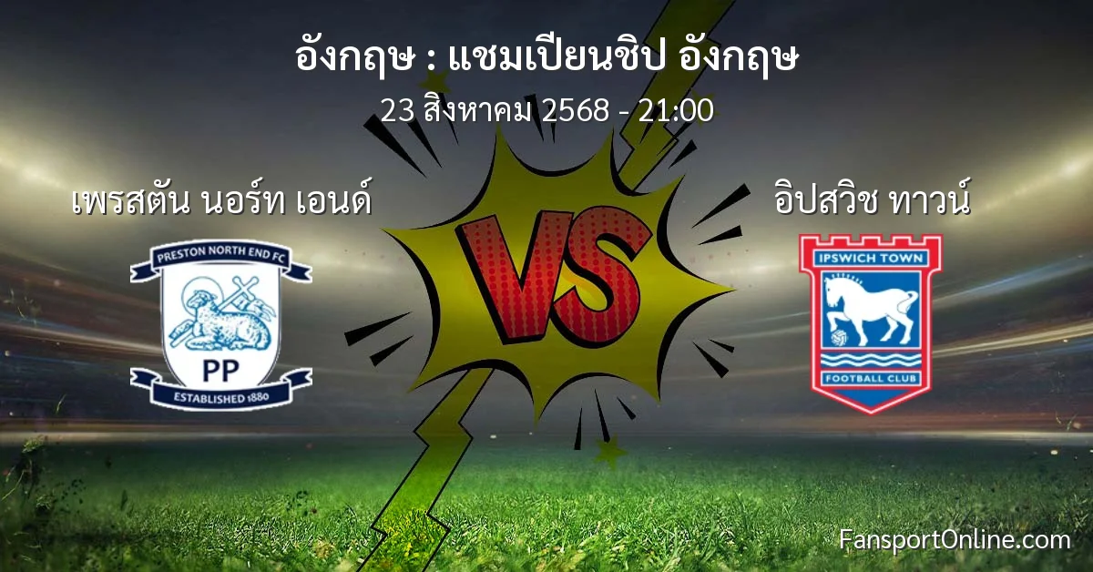 วิเคราะห์บอล แชมเปียนชิป อังกฤษ ระหว่าง เพรสตัน นอร์ท เอนด์ พบ อิปสวิช ทาวน์ (23 สิงหาคม 2568)