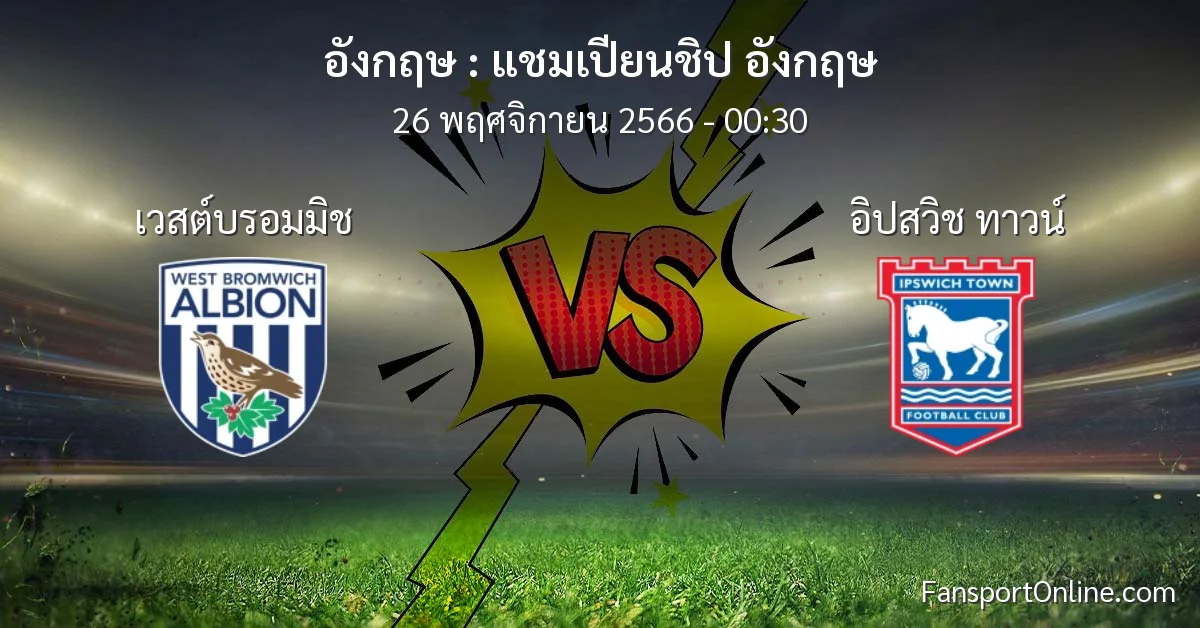 วิเคราะห์บอล แชมเปียนชิป อังกฤษ ระหว่าง เวสต์บรอมมิช พบ อิปสวิช ทาวน์ (26 พฤศจิกายน 2566)
