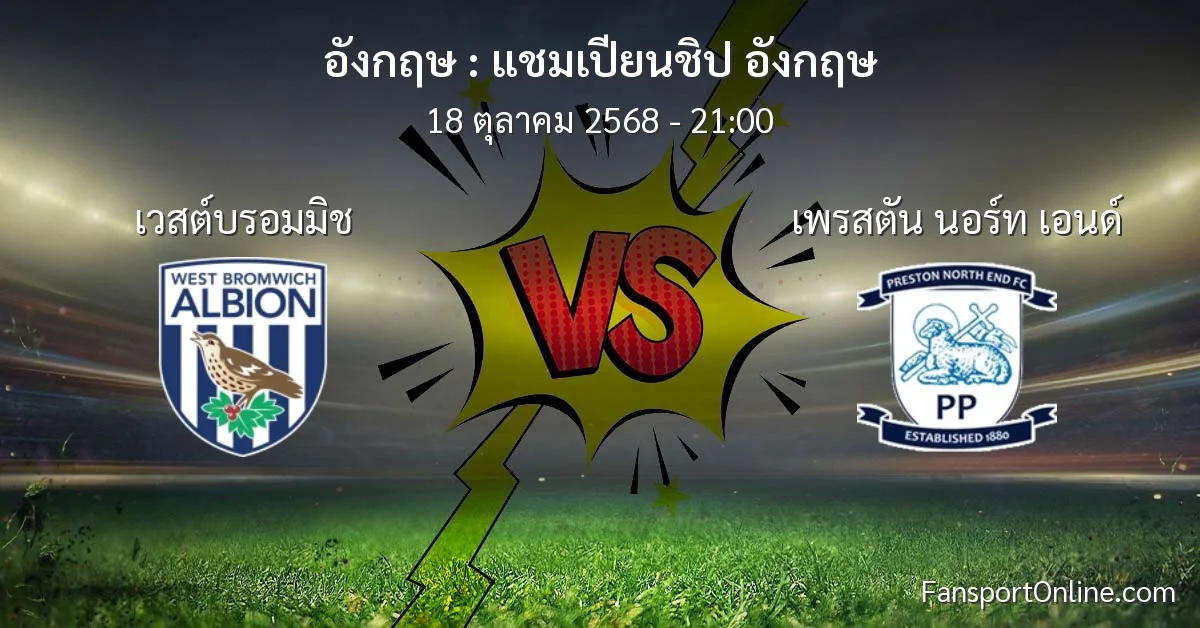 วิเคราะห์บอล แชมเปียนชิป อังกฤษ ระหว่าง เวสต์บรอมมิช พบ เพรสตัน นอร์ท เอนด์ (18 ตุลาคม 2568)