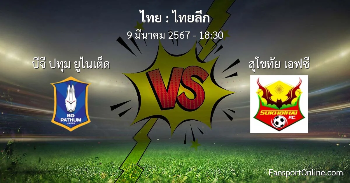 วิเคราะห์บอล ไทยลีก ระหว่าง บีจี ปทุม ยูไนเต็ด พบ สุโขทัย เอฟซี (9 มีนาคม 2567)